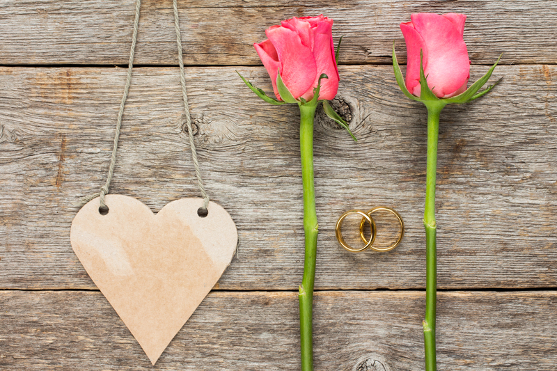 Heart shaped tag,wedding rings and roses Published May 5, 2017 at 800 × 533 in 3 Ways to Save During Wedding Season Blank heart shaped tag,wedding rings and roses on wooden background.