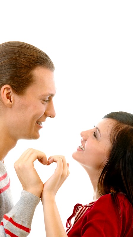 Amorous heart Published February 11, 2020 at 449 × 800 in How to Get a Great Valentine’s Gift on a Limited Budget Portrait of attractive girl and her boyfriend looking at each other while making shape of heart by their hands