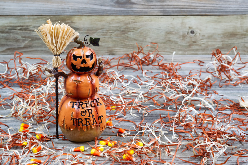 Scary large orange pumpkin ceramic figure on rustic wood Published October 14, 2020 at 800 × 533 in How to Keep Halloween from Scaring Your Budget Horizontal image of a scary orange pumpkin figure holding straw broom placed on rustic wooden boards